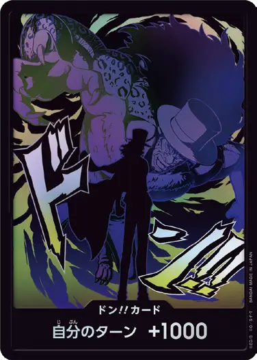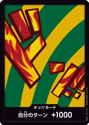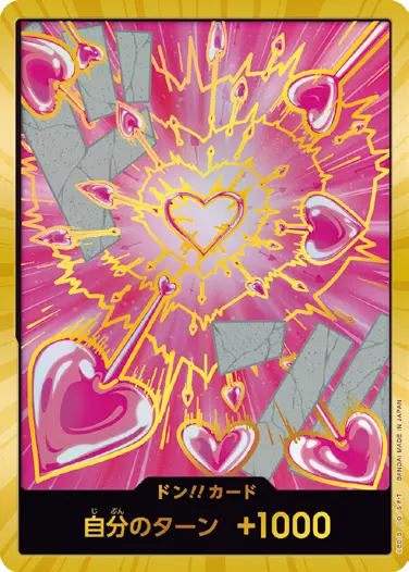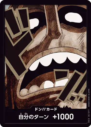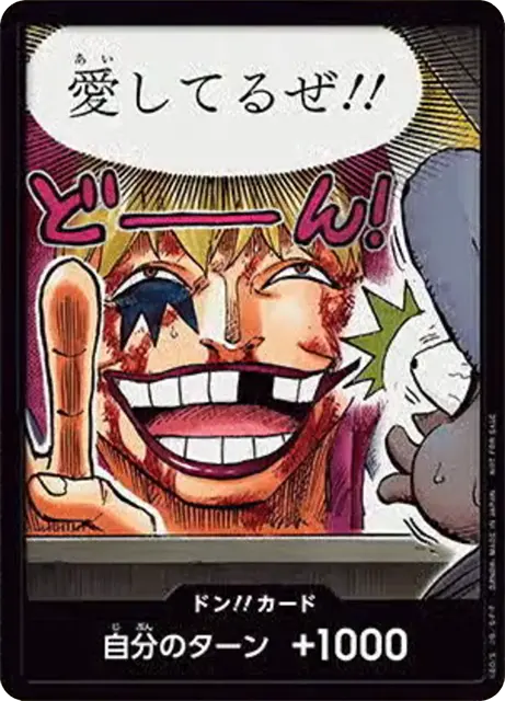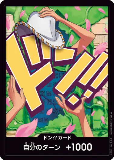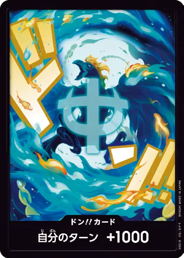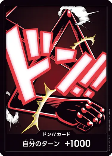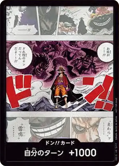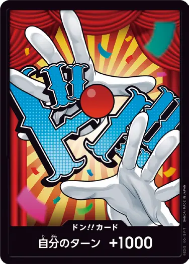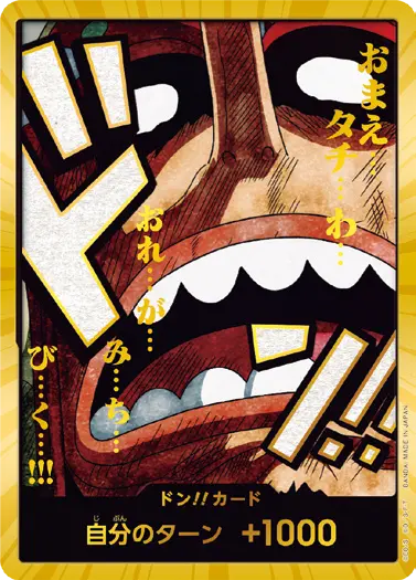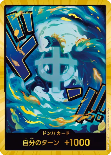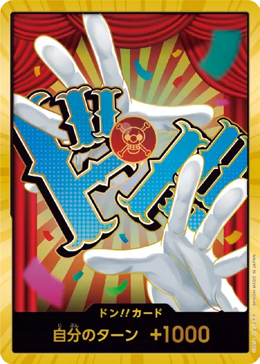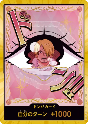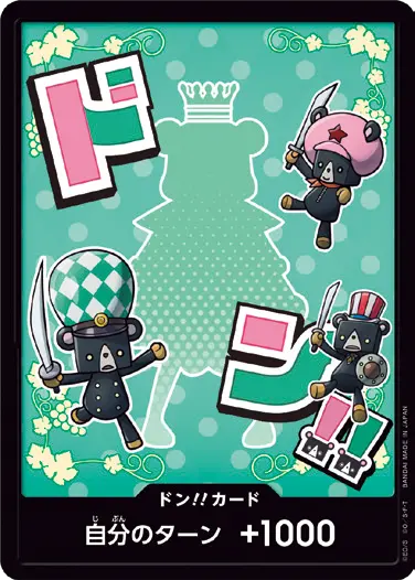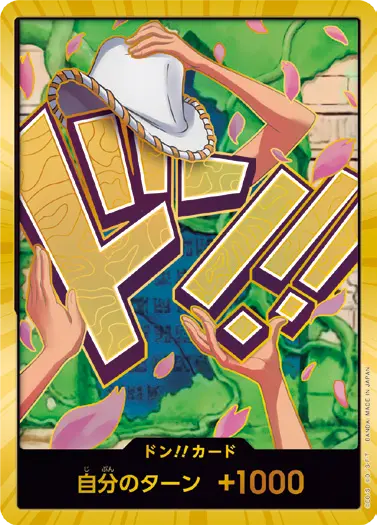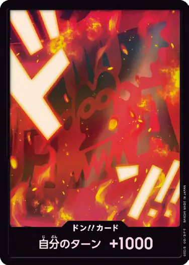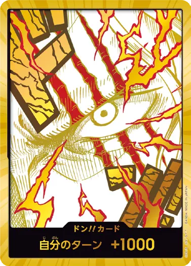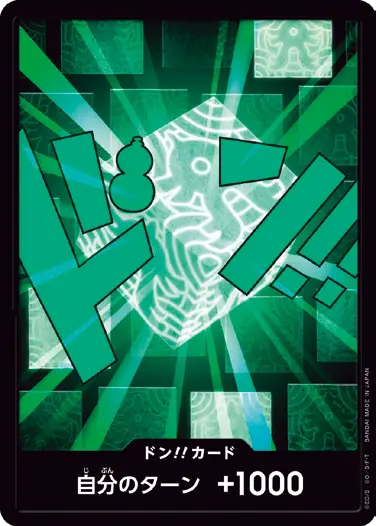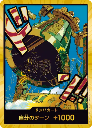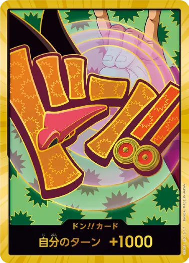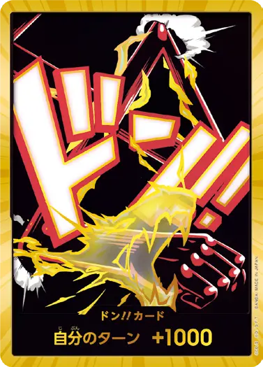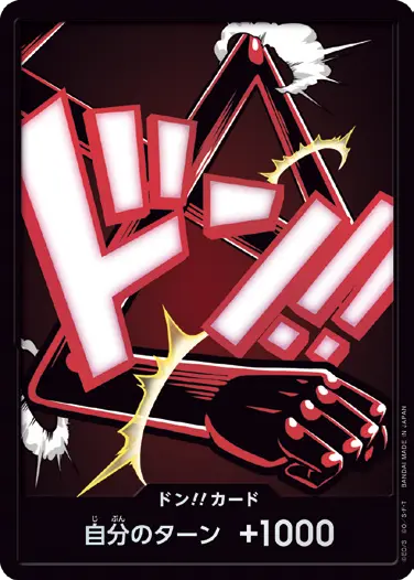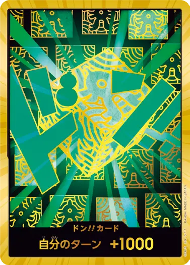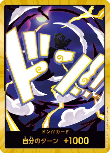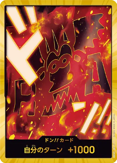 一番オーソドックスなドン!!カードで、スタートデッキや初期のブースターパックに収録されています。また、アルティメットデッキには、代わりにフォイル加工版が収録されています。