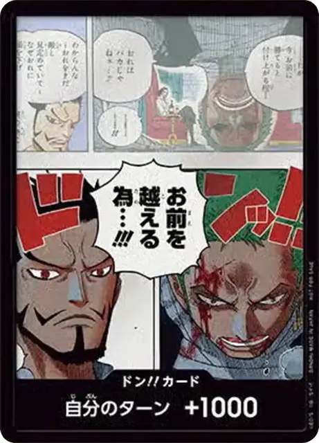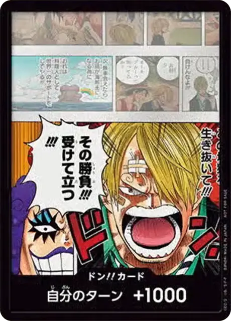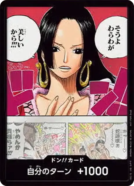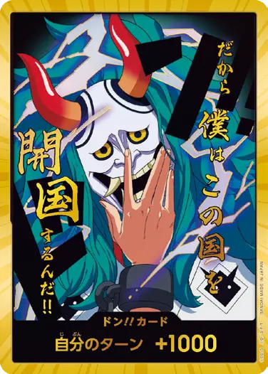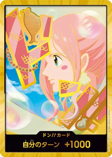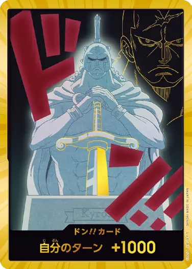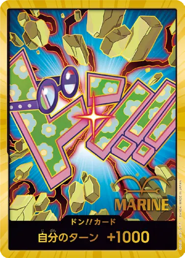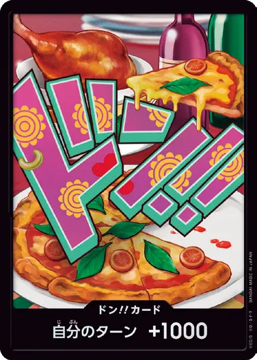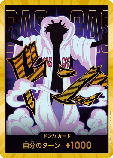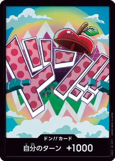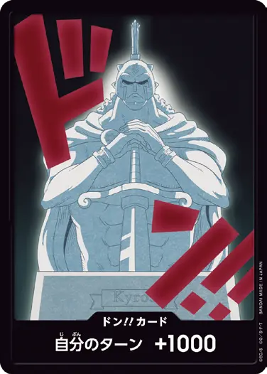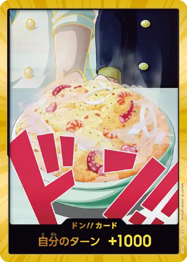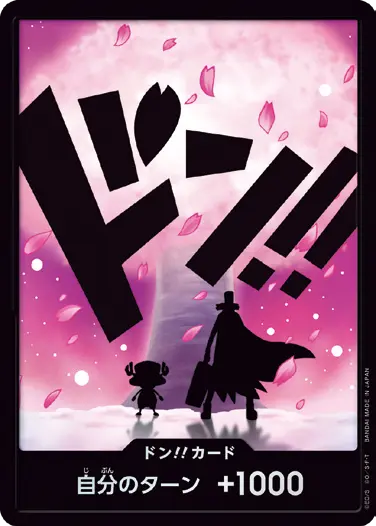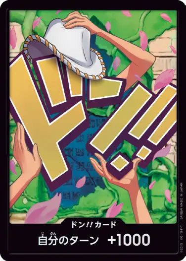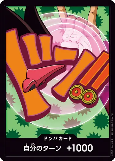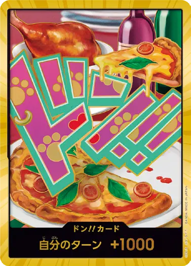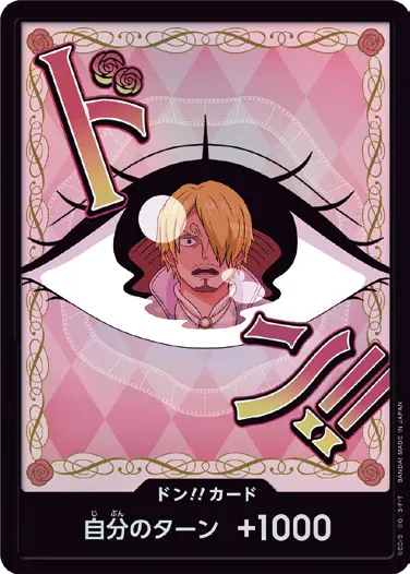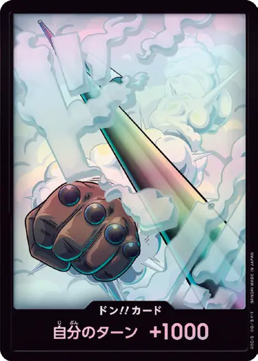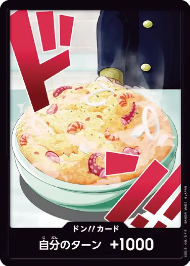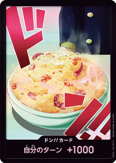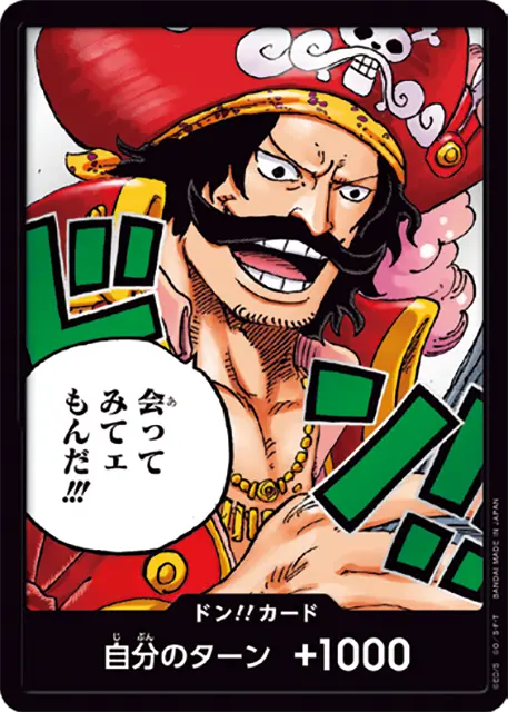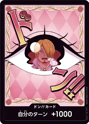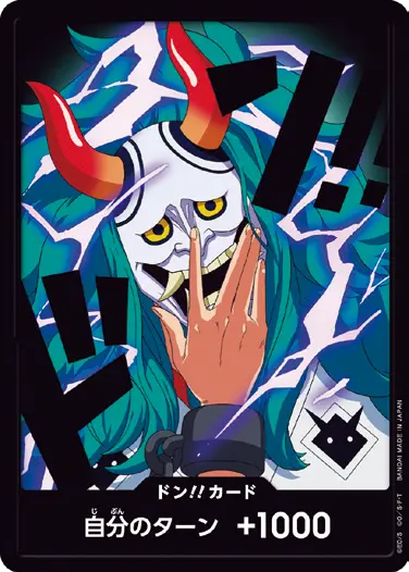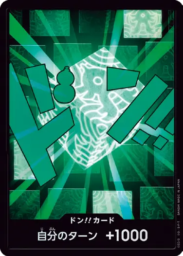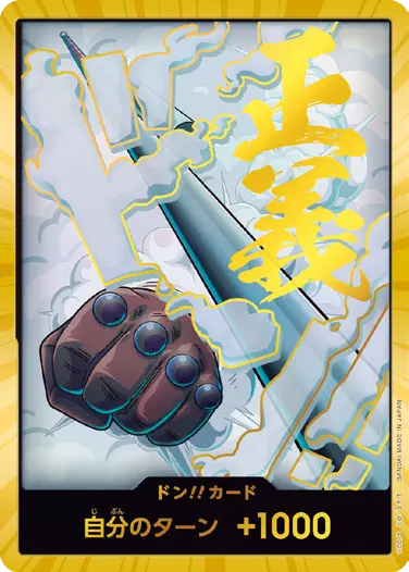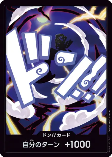 一番オーソドックスなドン!!カードで、スタートデッキや初期のブースターパックに収録されています。また、アルティメットデッキには、代わりにフォイル加工版が収録されています。