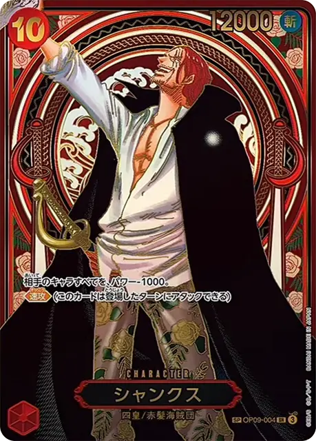 | テキスト 相手のキャラすべてを、パワー-1000。 速攻(このカードは登場したターンにアタックできる) | |||