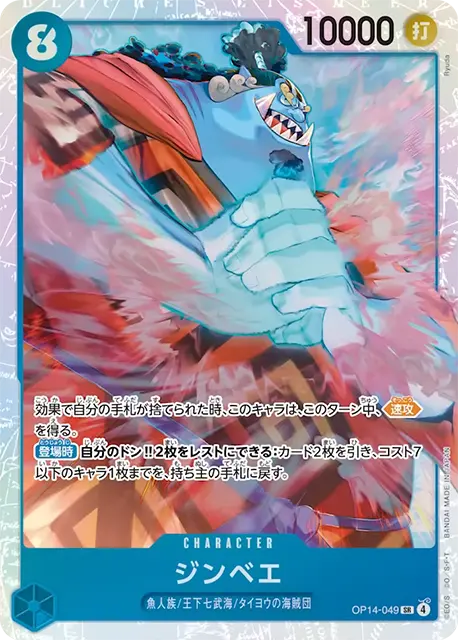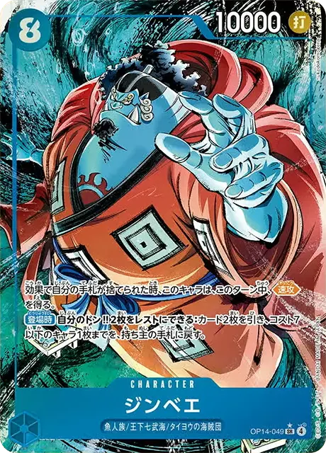 | テキスト 登場時自分のリーダーが特徴《王下七武海》を持つ場合、自分のデッキの上から1枚までを、ライフの上に加える。その後、相手のライフの上から1枚までを、持ち主の手札に加える。 トリガー自分の手札からパワー6000以下のトリガーを持つキャラカード1枚までを、登場させる。 | |||