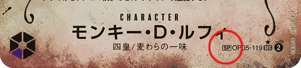 スペシャル(SP)は、カード右下の型番・レアリティ部分にSPと表記されています。